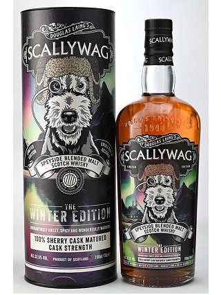 本日はそのスカリーワグの「ウィンターエディション」をご紹介いたします。この冬季限定エディション、まず目を引かれるのは何といっても感動的に美しいオーロラを眺めに北へと旅立ったフォックステリアが描かれているラベル!